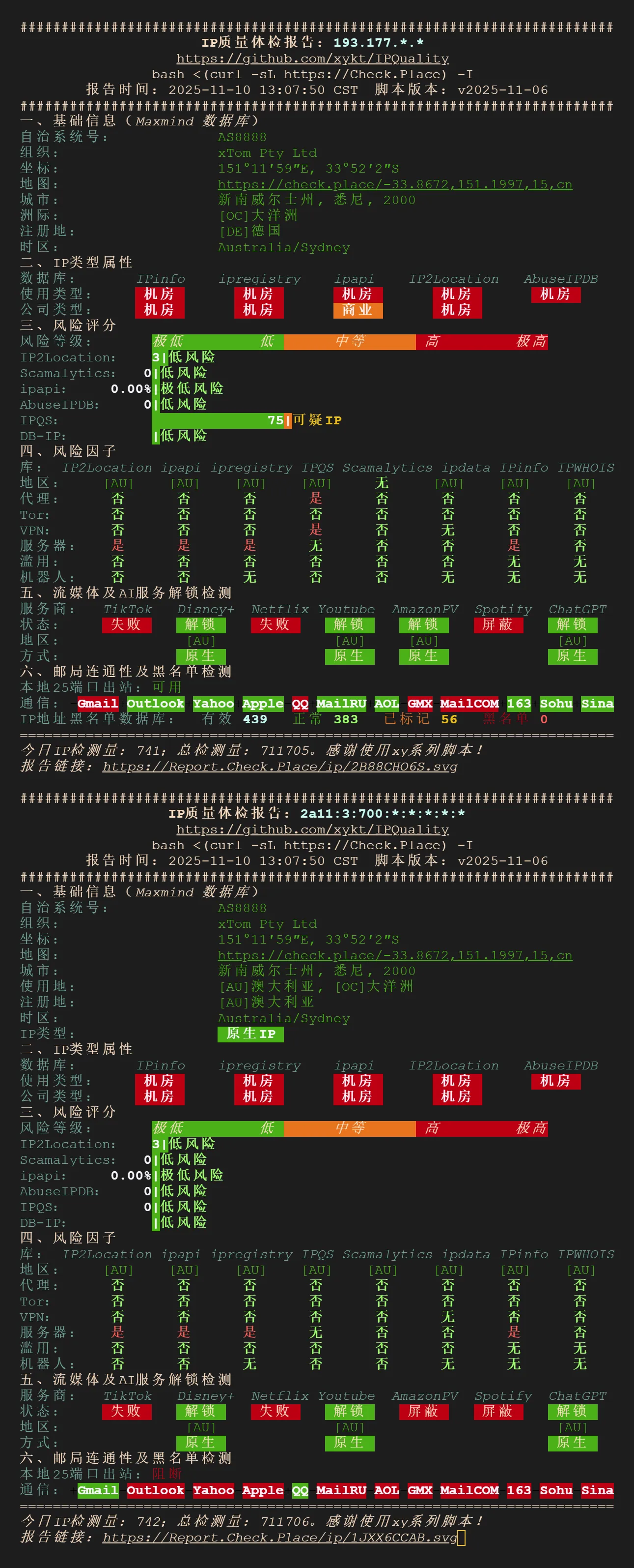 IPv4/IPv6 : ✔ Online / ✔ Online