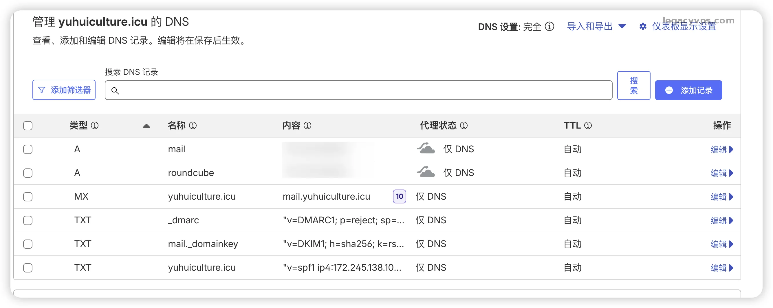 这是最关键的一步,请登录你的域名服务商后台(如阿里云、腾讯云、Cloudflare),添加以下记录,我这里是使用Cloudflare作为演示,所以可能和你的不一样但是添加记录的方式都是一样的。