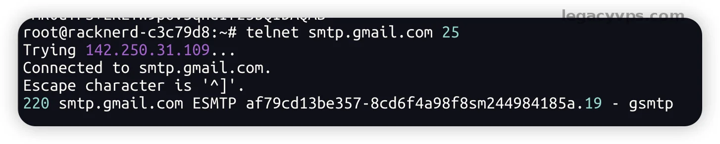 telnet smtp.gmail.com 25测试,如果通了就是开放的,不通请找服务商申请)。
