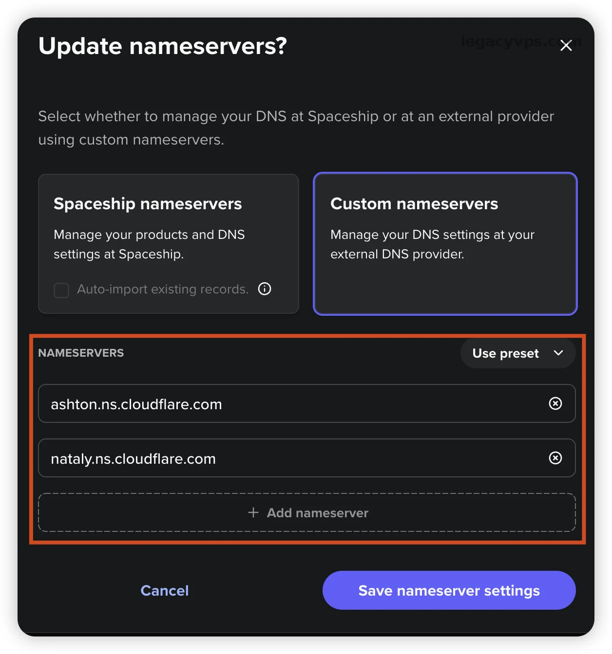 如果你是国内的平台,比如阿里云、腾讯云还是西部数码。其实本质都是更改Nameserve,所以你只需要找到修改Nameserve的位置也是一样的操作,我这里也只是演示了Spaceship平台的修改方式。
